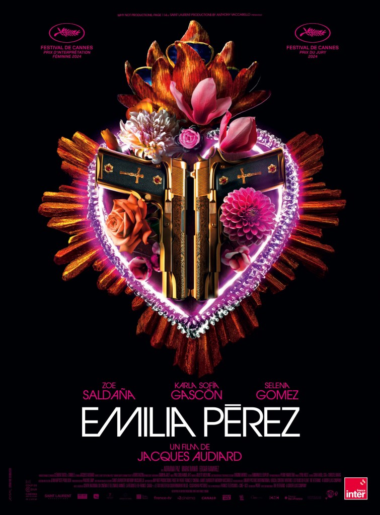 Il vispo settantenne Audiard (Un héros très discret, Il profeta, Un sapore di ruggine e ossa, Dheepan, Parigi, 13Arr.) firma il più inclassificabile dei suoi film, creando un mix tra musical/melò/crime/thriller molto godibile. Sotto alla superficie “ludica” (diciamo così), tante e gravi questioni esistenziali, a cominciare dalla domanda se a un cambiamento fisico possa corrispondere anche un mutamento caratteriale (risposta: no). Cast efficace, con tutte le protagoniste “in palla” e una regia spesso ottundente, abbacinante, mirabolante. Premio della giuria e Prix d’interprétation féminine a Karla Sofía Gascón, Selena Gomez, Adriana Paz e Zoe Saldana al Festival di Cannes 2024.