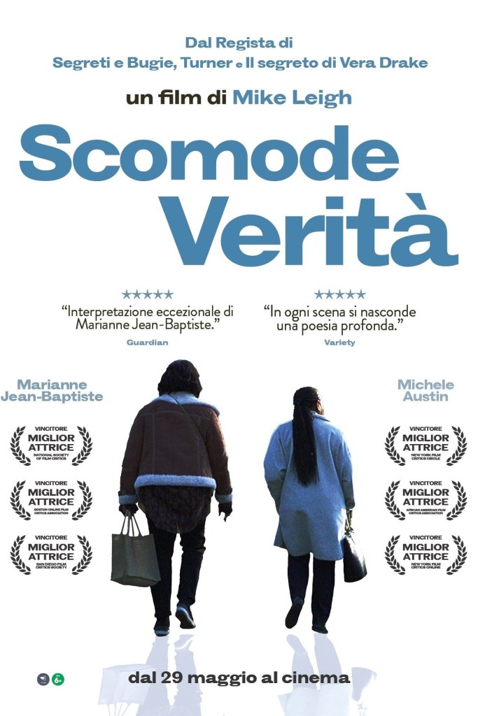 Mike Leigh torna a parlare di società, vita di tutti i giorni e piccoli (o grandi) problemi personali dopo la parentesi (non proprio entusiasmante) dell’analisi “storica” vista in Turner e Peterloo. E che ritorno! Un film durissimo, spesso insostenibile, al netto di alcuni momenti oggettivamente esilaranti (umorismo nerissimo, ça va sans dire) che racconta la triste vita di una donna di mezza età incazzata con tutti: figlio, marito, medici, cassiere, estranei incontrati per caso, il mondo intero. Solo la sorella, suo esatto opposto, cerca di comprenderla e aiutarla. Il personaggio di Pansy Deacon, interpretata da un’eccezionale Marianne Jean-Baptiste è però privo dell’umorismo tagliente dell’altrettanto nichilista Boris Yellnikoff di Basta che funzioni e prostrata da una forma di depressione che lei stessa non riesce ad accettare (la scomoda verità del titolo). Leight racconta e definisce i personaggi utilizzando non solo la parola, ma i luoghi (le case delle due sorelle, diversissime), i colori, la luce, riuscendo a descrivere anche le figure secondarie con grande efficacia e apprezzabile sintesi. Fantastico il finale “sospeso” che potrebbe portare ad una catarsi così come al definitivo naufragare dei rapporti tra la protagonista e le persone che le stanno attorno. Bentornato Mike!